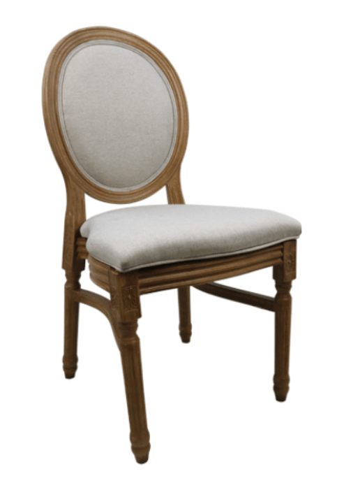 Louis Arm Chair Resin with padded seat Resin dining chair with a round back and a light beige seat. Perfect for a formal or casual dining setting