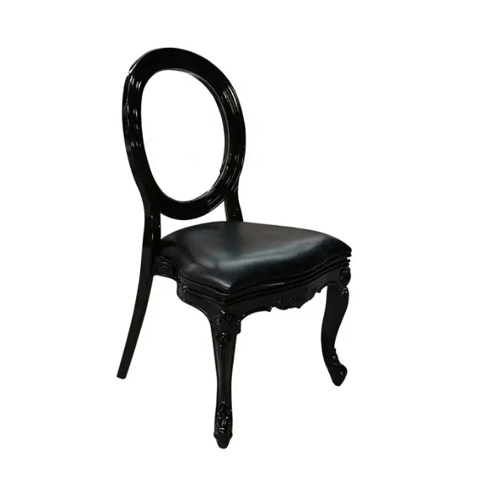 Louis Open Back Chair Resin with padded seat Resin dining chair with a round back and a light beige seat. Perfect for a formal or casual dining setting