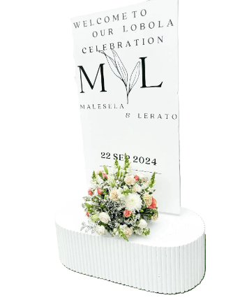 White Ripple Welcome Banner with Oval Stand